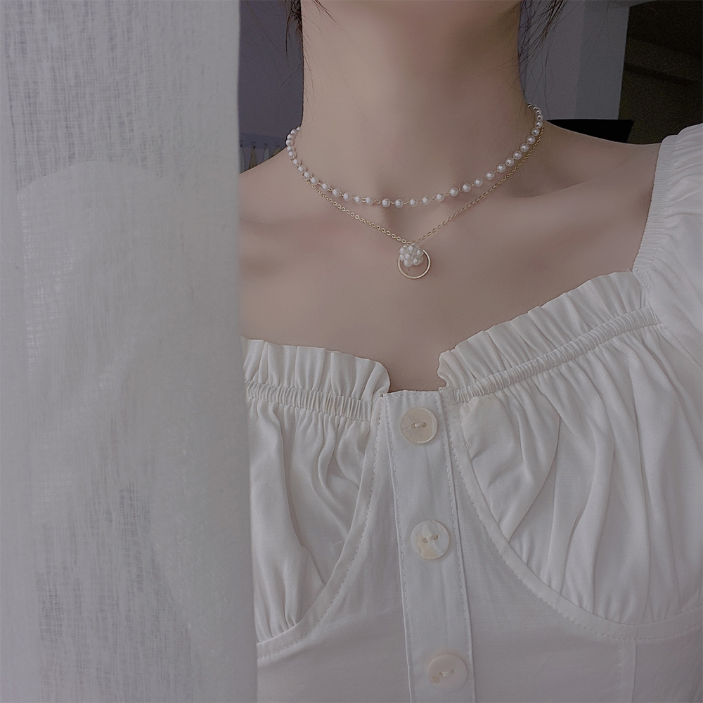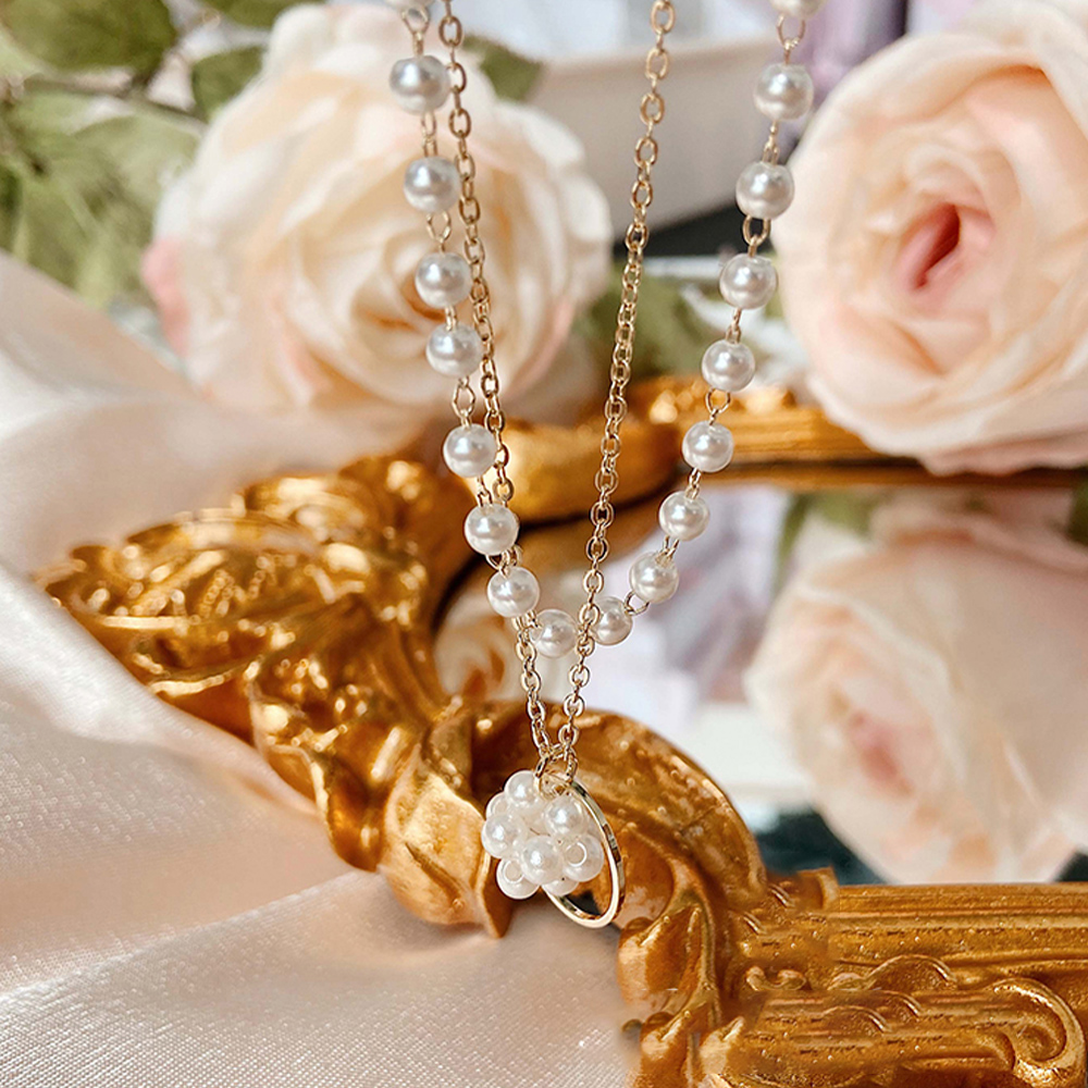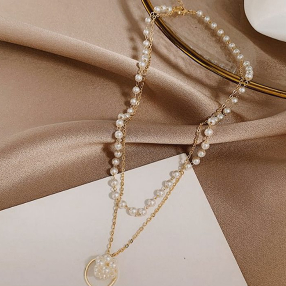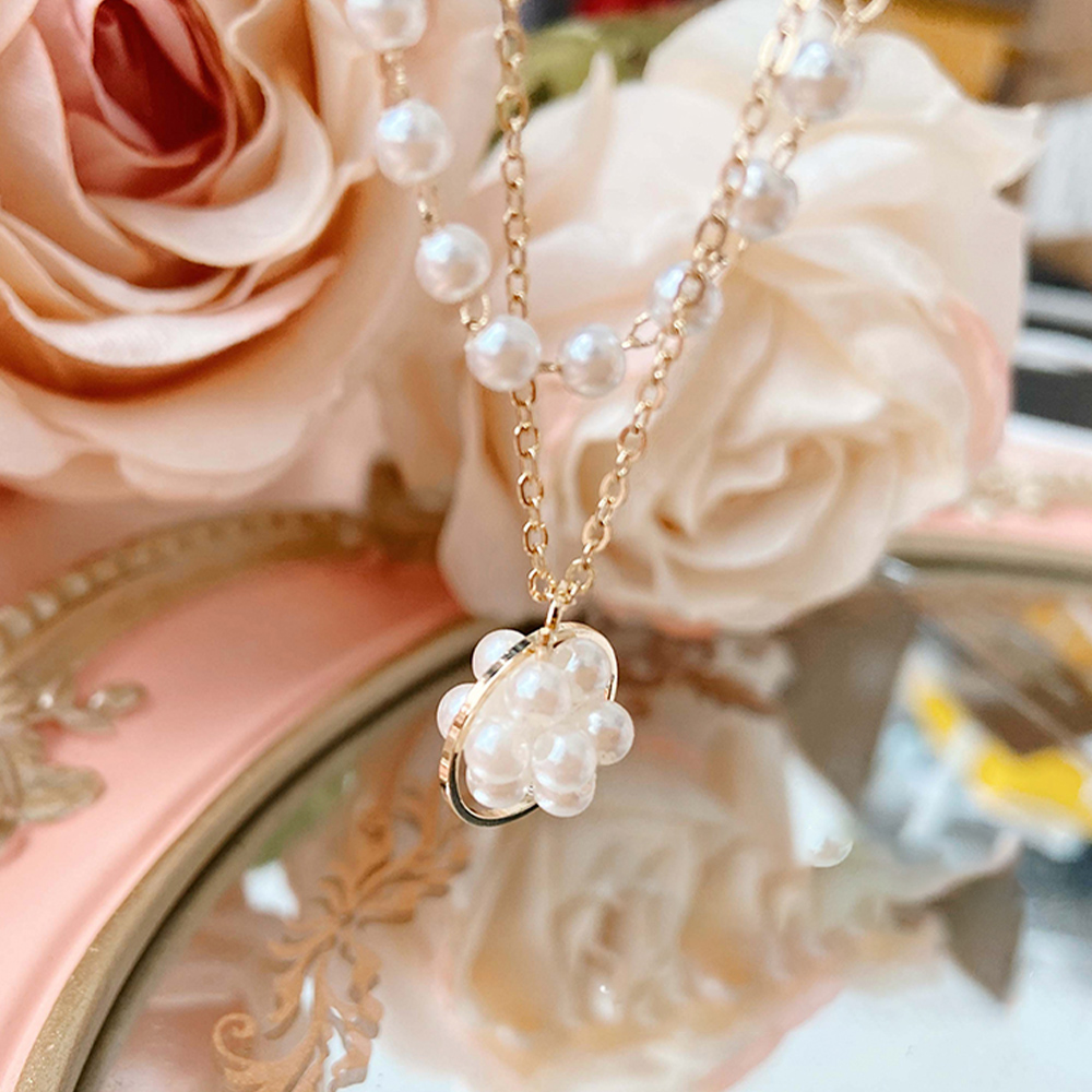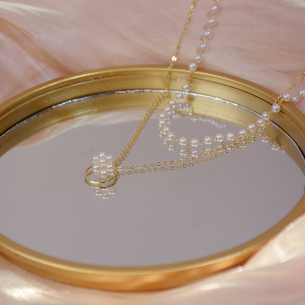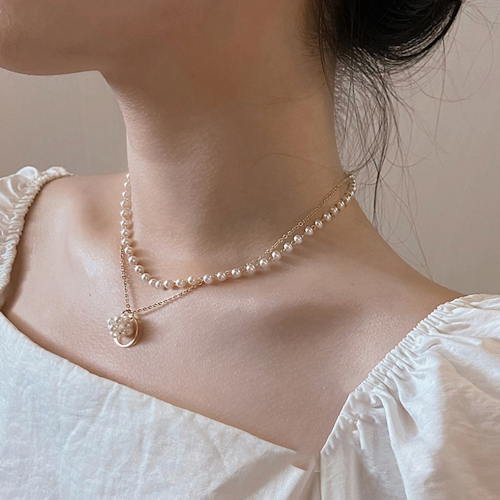 一点投入するだけで女性らしさをアップする二連パールチョーカー風ネックレスチェーン