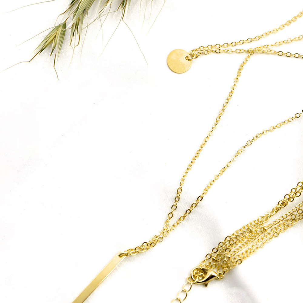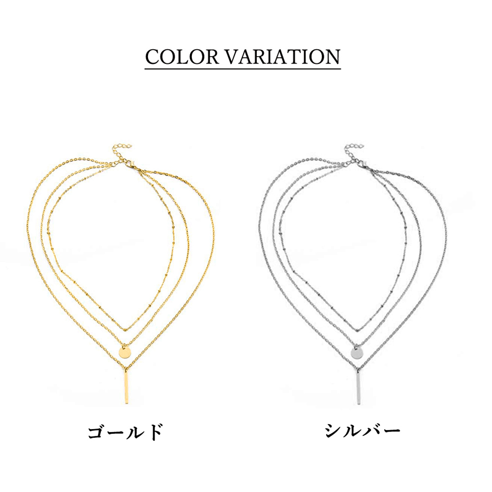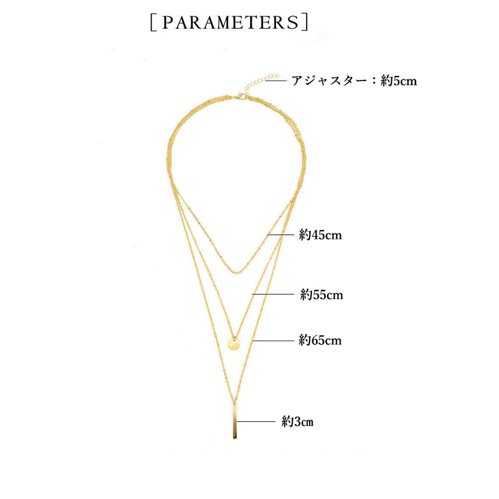 異なる長さの三本のネックレスチェーンが重ね付け風の洗練されたスタイルを実現。