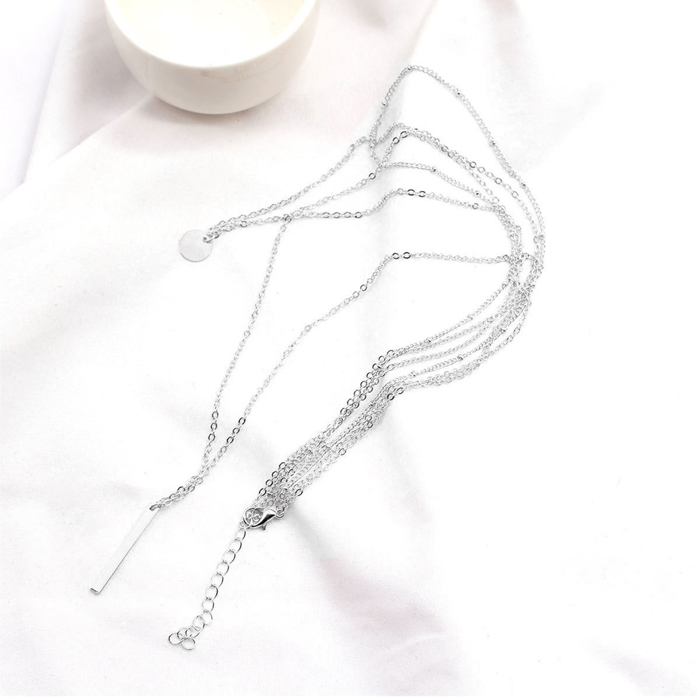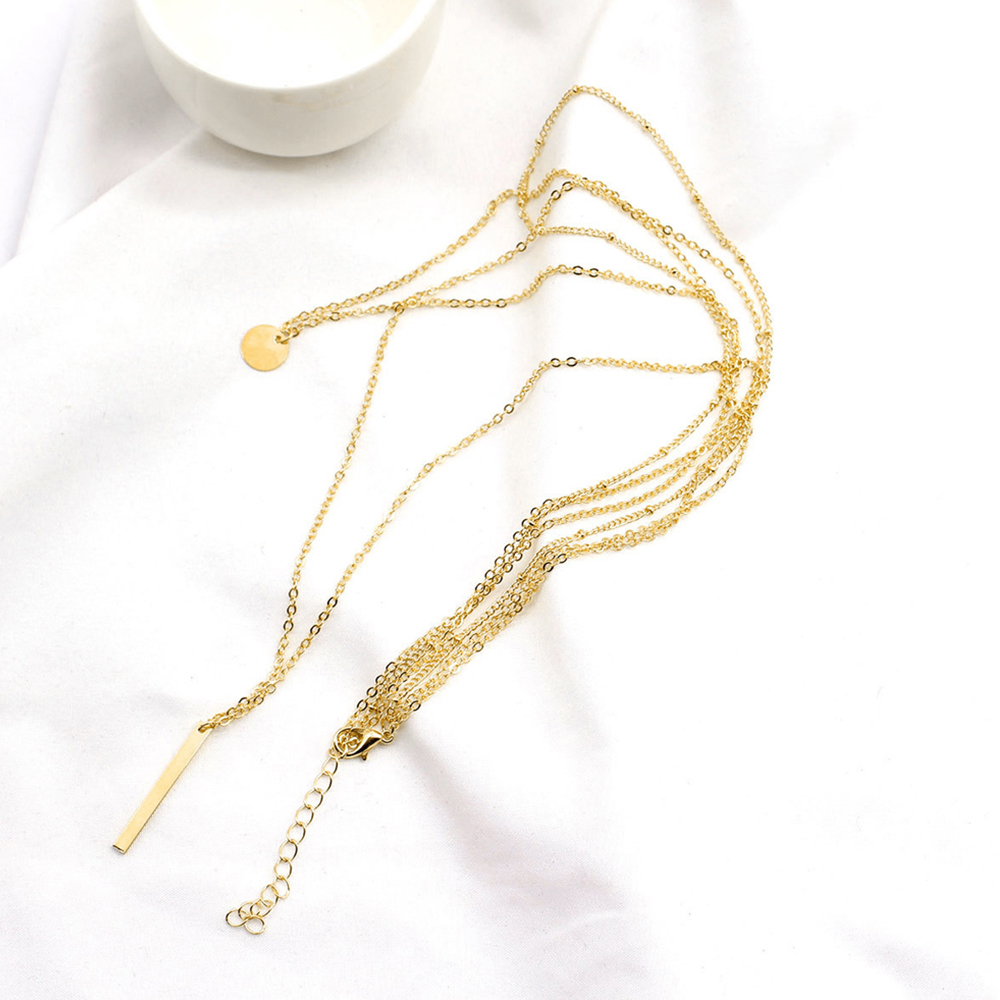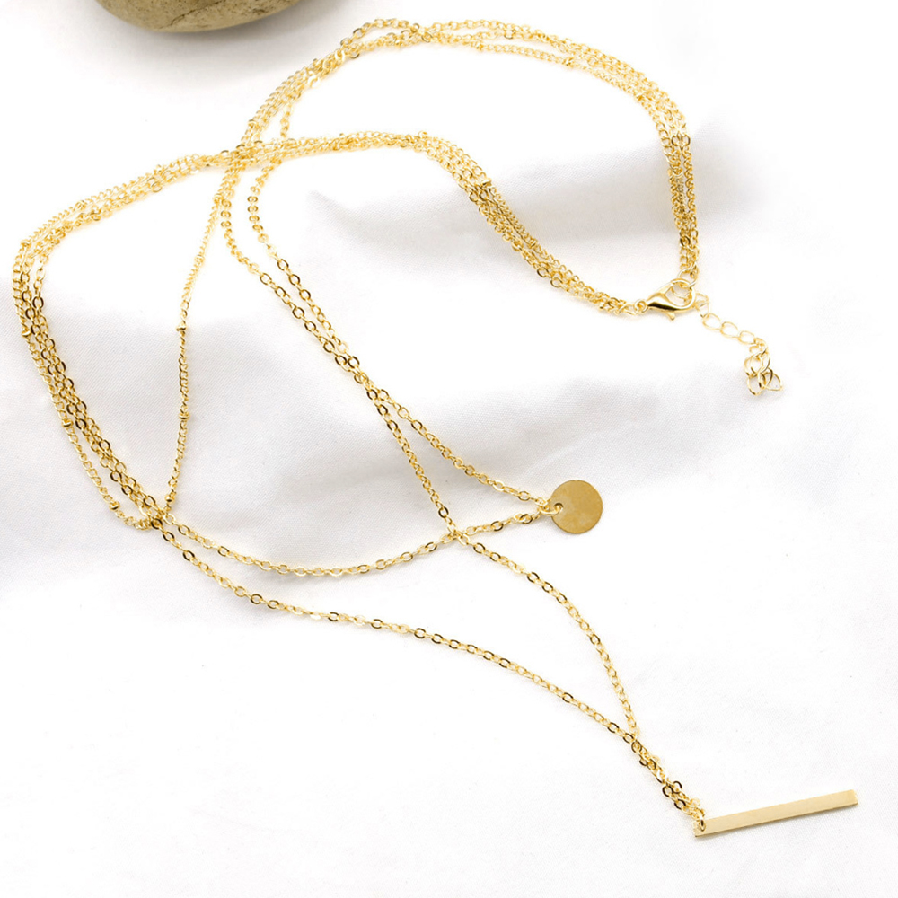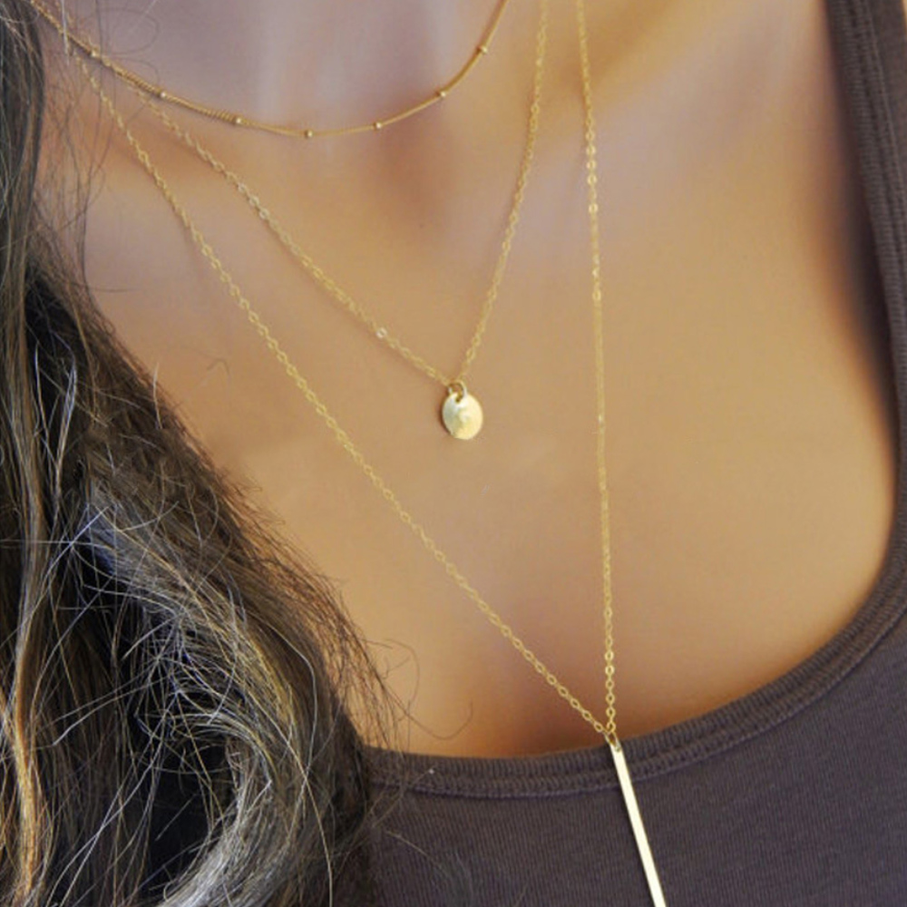 異なる長さの三本のネックレスチェーンが重ね付け風の洗練されたスタイルを実現。