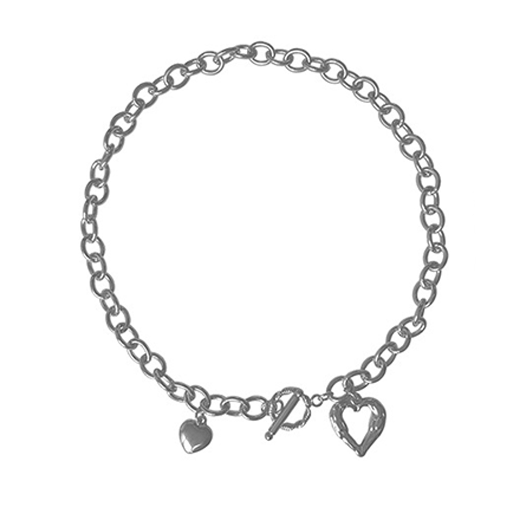 トグル式の留め具とダブルハートモチーフが大人女性の魅力を引き立てる