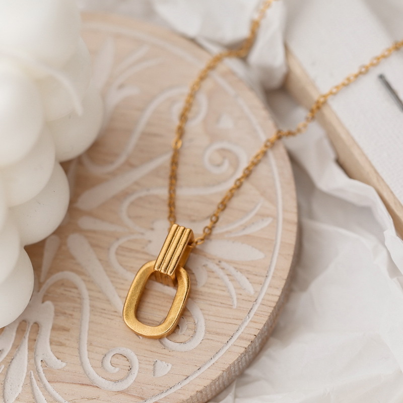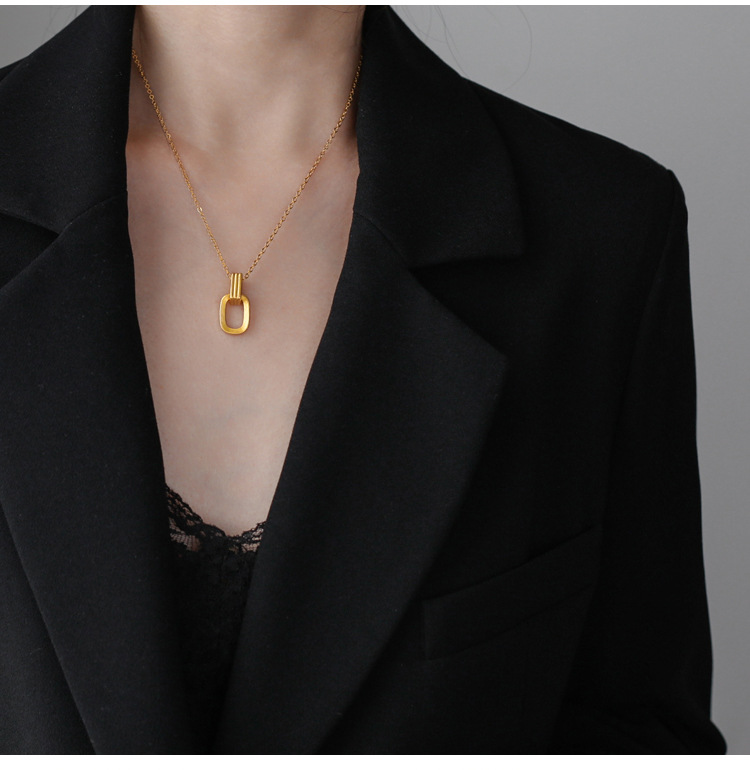 大人かわいい雰囲気の長方形ペンダント付きネックレスチェーンです。